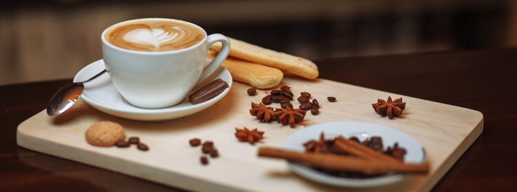Lieferung erfolgt inklusive Geschirr, Besteck, Milch, Kaffeesahne und Zucker.
